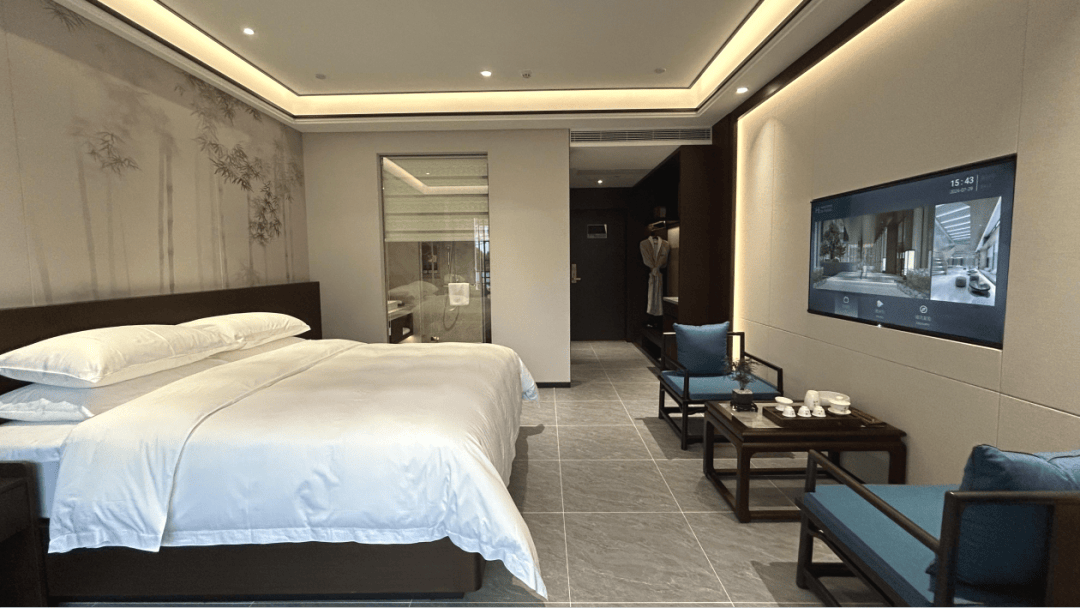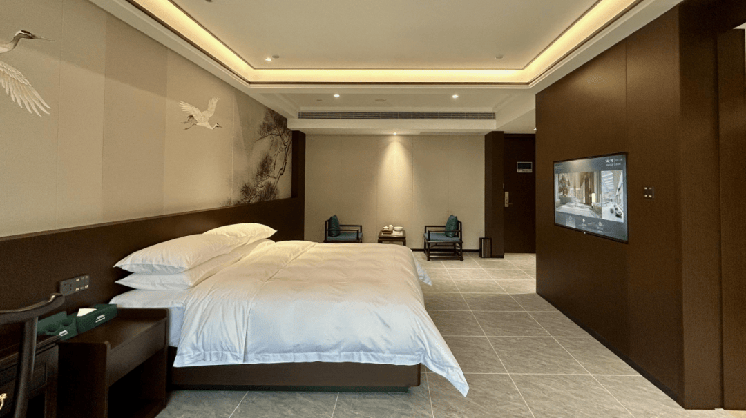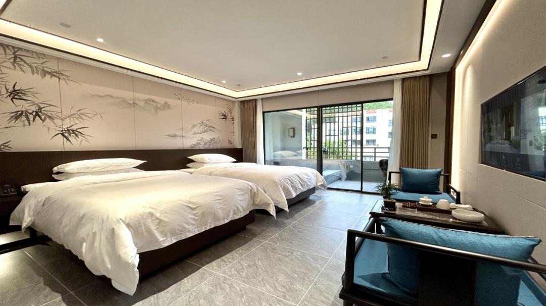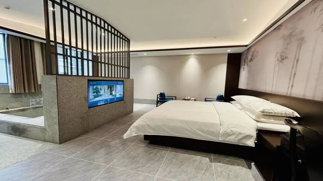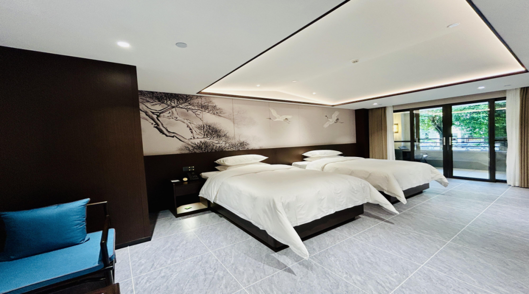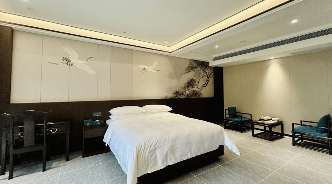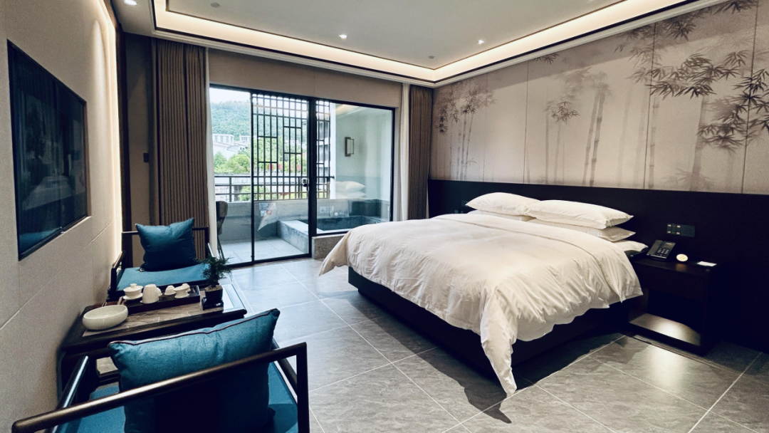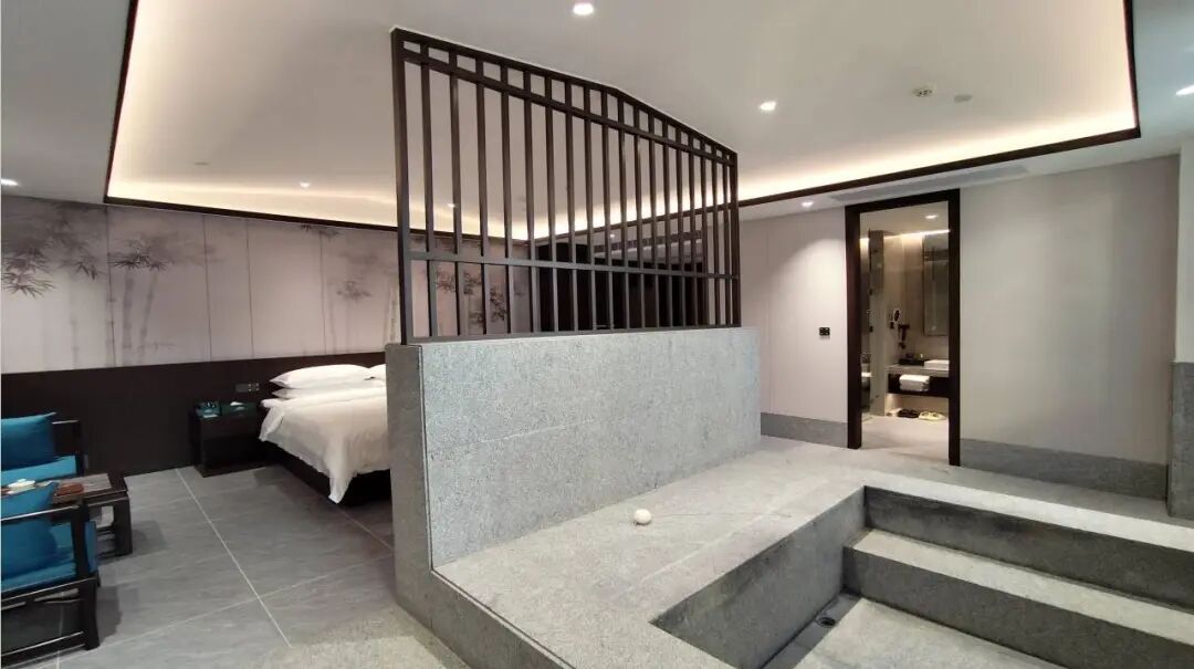 酒店現擁有經典間、豪華間、商務間、行政套房共60餘間。房間結構合理,南北通透,光線充足,極具人性化的設計,可滿足客人的不同需求。房內佈置完善細緻,風格典雅温馨,環境舒適自由,內設有温泉泡池、獨立衞浴、品茗茶具、高清電視、中央空調、冷熱飲設備、免費WiFi、新風系統等基礎設施,滿足客人各種居住需求
