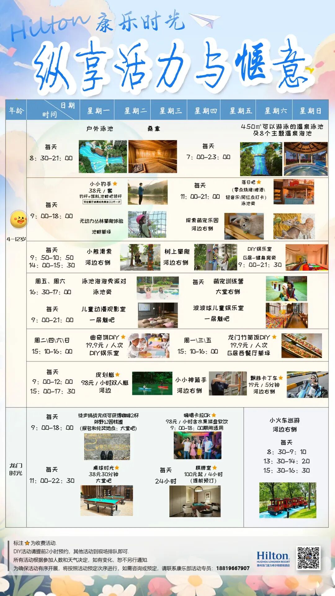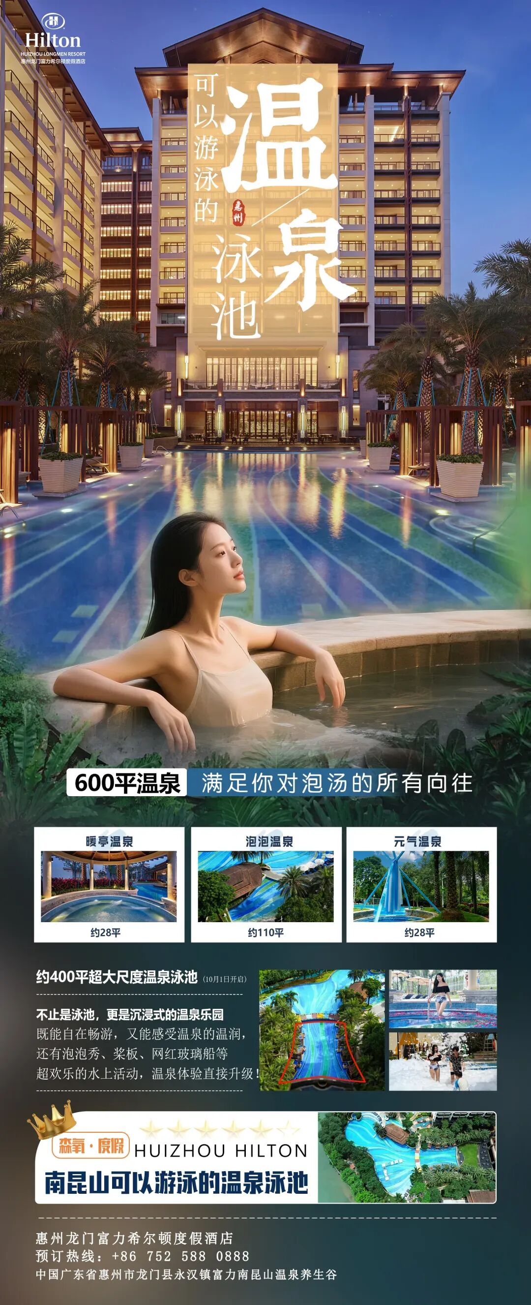 龍門富力希爾頓酒店豪華園景房(2大1小自助早+2大1小鮮薈自助晚餐+皮划艇體驗+400平温泉泳池+豐富康樂體驗)