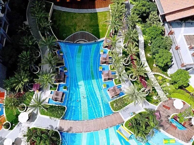 酒店1200㎡的超大室外泳池必須要打卡包括自由泳池、100㎡兒童池和按摩池,對所有住客免費開放!