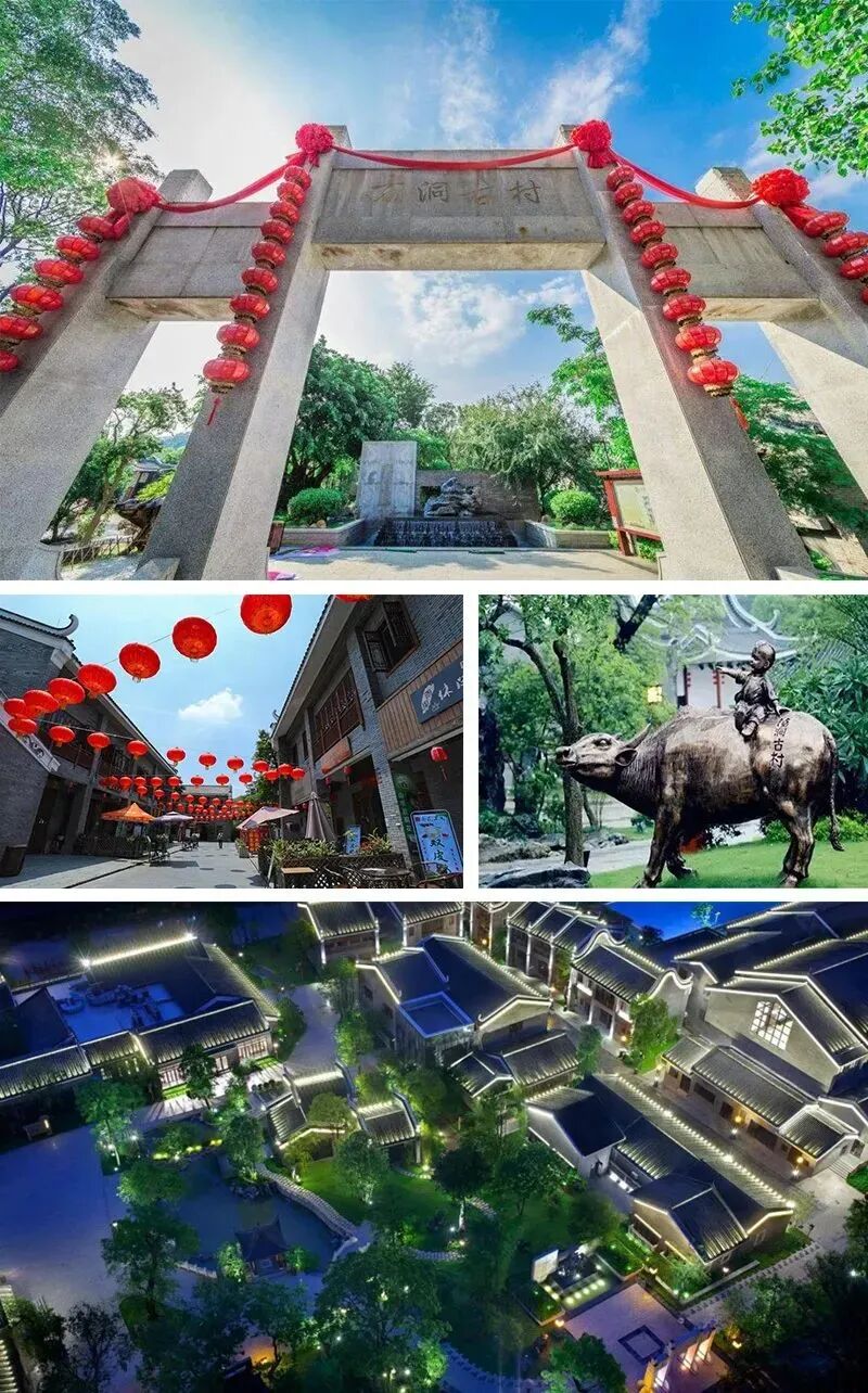 【 萬洞古村 】 山環水繞,薈萃嶺南特色文化古樸自然的木、石、瓦、銅等材質構成鍋耳牆廓、祥雲石雕、青磚黛瓦、牧童遙指等嶺南風情文化視覺形態