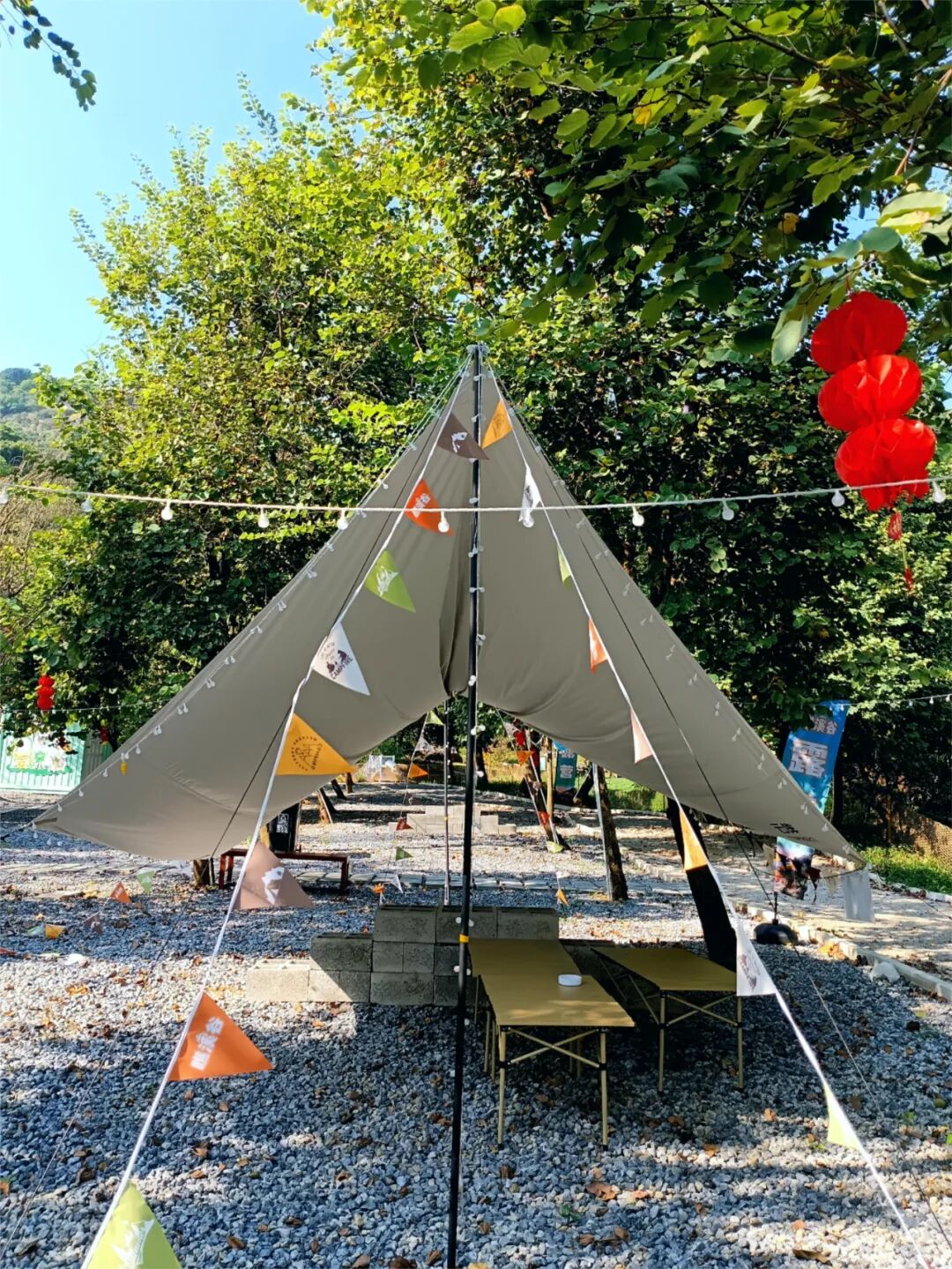小溪旁還貼心地搭好天幕玩累了可以坐下吹風憩息別提有多暢快了!