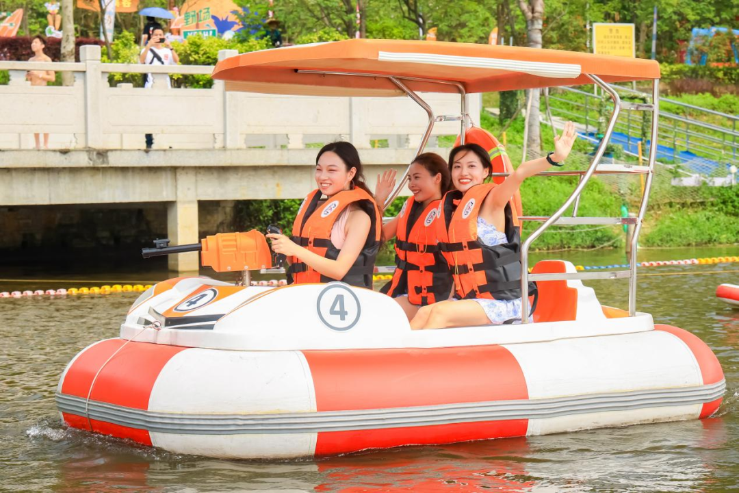 水上項目,快樂加倍在這裏,你還可以撐着皮划艇暢遊在波光粼粼的水面上更有水上碰碰船、槳板水上三輪車……一次滿足你N種玩水願望(需自費)
