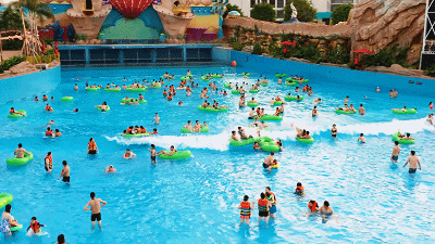 加勒比海灘主題區面積有多大?造浪池可以容納幾多人?