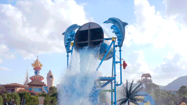 來過水公園的人都肯定會被媲美《海王》電影的69米高海神山吸引目光!