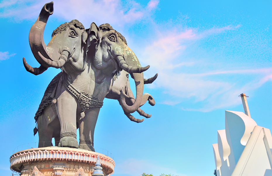 三象神博物館:大象似乎成了泰國的一種象征。 在泰國旅行,到處可以看到或感受到大象,三象神博物館被分為三大部分,分別是地下室的“海底世界”、一樓平台的“美麗人間”,以及象肚裏的“天堂”,各自展出不同主題。 各主題代表不同涵義的藝術,恍惚間讓人感覺仿佛走入神秘而又美麗的神話宮殿,隨思而怡情,無需過多的設定,單純是種欣賞,也可以說是一件件神聖莊嚴的精雕細作的作品,有時候,更是過去、現在、未來的時空轉換。 “海底世界”的展品,主要是中國明清時代的古董家具及瓷器; “美麗人間”則有很高的神殿,展示中國及泰國藝術品。 “天堂”則供奉著佛骨及重要的佛像,屋頂透光的彩繪玻璃,是德國藝術家所繪制的世界五大洲及西洋星座的地圖,當陽光穿過屋頂照射進來,地板上便呈現五顏六色的美麗景象。 旅客也可搭電梯直達象神肚的光明神殿。 從高處俯瞰園區,景色秀麗迷人,博物館周圍的泰式庭園,小橋流水,氣氛恬靜。